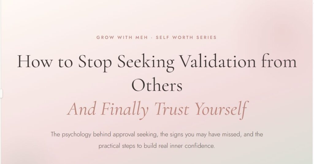 Seeking validation is not something to feel ashamed of. It is something to understand. Now that you see where it comes from and what it looks like, you can start making different choices. Not perfectly. Not all at once. But steadily, one moment of self-trust at a time.